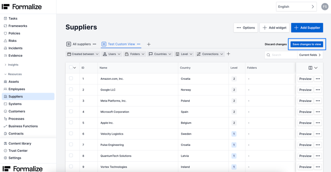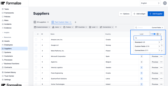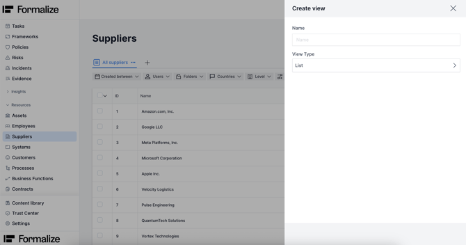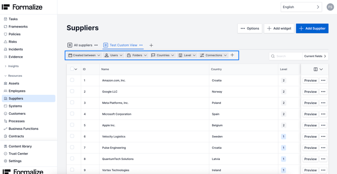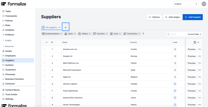 You can create customer views across all Formalize. Let's take Suppliers as an example.