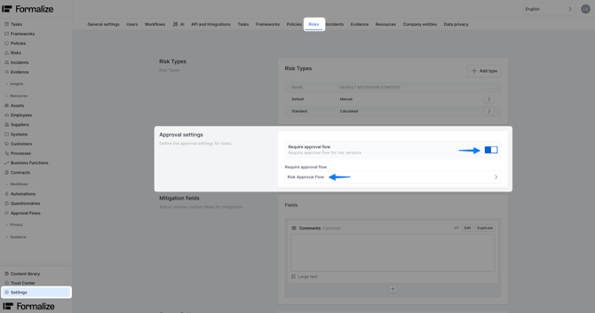 Risk settings allow you to fully tailor how risks are categorized, scored, approved, and documented.