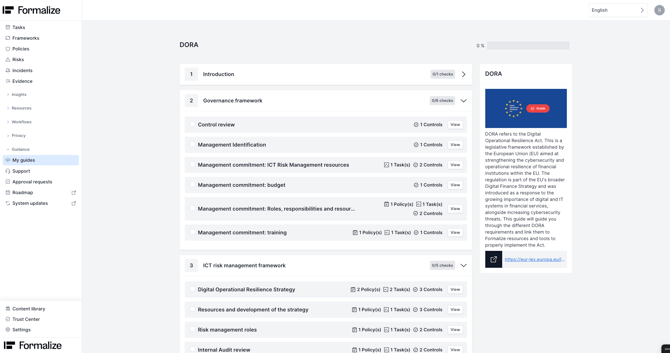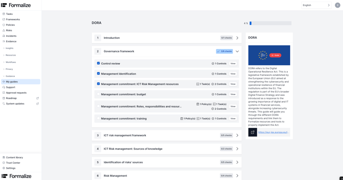 For use cases such as DORA and NIS2, Formalize provides Implementation Guides created by our Product Enablement Team. In this article, you will learn how Guides work and how to best use them in your company's journey to full implementation.