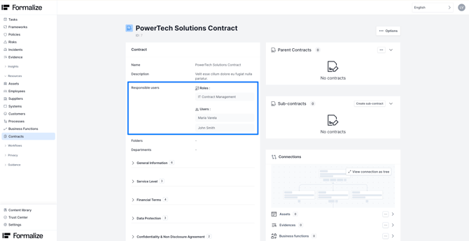 In contrast to John, Maria can view all other contracts inside the Formalize account, regardless of responsibility.