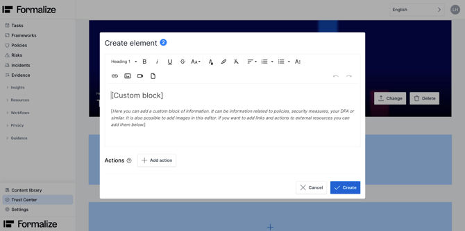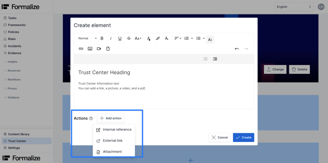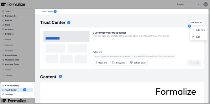 We hope this article was helpful and that you now have a clear understanding of how to use the Trust Center in Formalize!If you need additional support, please reach out with any questions by email, at support@formalize.com.