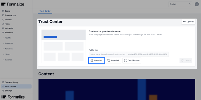 If you want to see it, click Open link to preview how your Trust Center appears to external viewers.