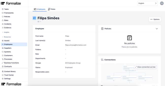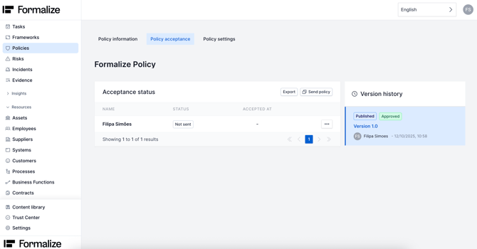 In Formalize, before sending a policy for acceptance, you must first map your employees under Resources → Employees.