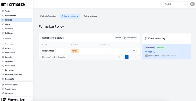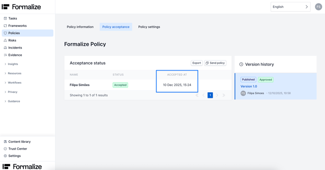 When an employee accepts the policy, the platform will show the date and time of acceptance.