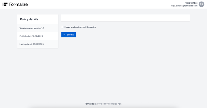 After reading the policy, the employee simply needs to check the box 'I have read and accept the policy' and click Submit.