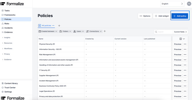 The Policy module is your centralized workspace for creating clear, consistent organizational policies. It gives you a structured way to draft policies from scratch, define their content, and ensure they follow a standardized format. You can assign owners, add supporting details, and keep everything organized in one place—removing the need for scattered documents or manual versioning.