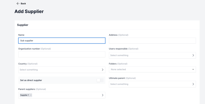 You can create a sub-supplier directly from the associated direct supplier's record, by clicking on the "Create sub-supplier" button.