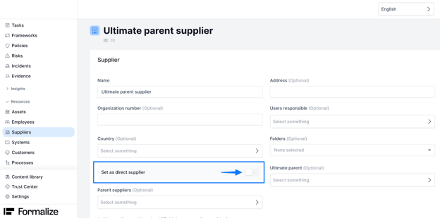 After you’ve filled out the information, you have to return to your direct supplier and connect it to the ultimate parent.