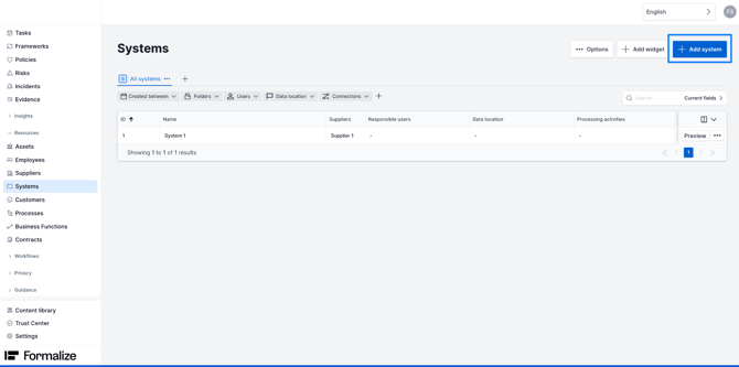 You will have to fill in a form just like you did for the previous resources, with specific information about that system/ICT Service.