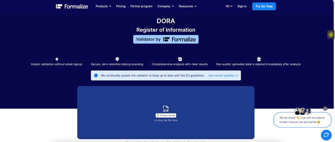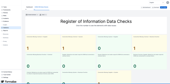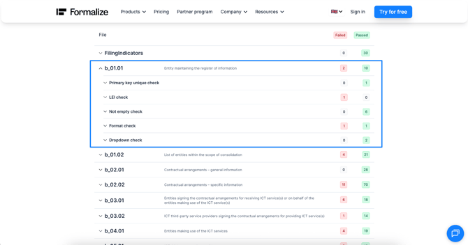 This guide details the end-to-end process for creating the DORA Register of Information (ROI) within the Formalize platform. The steps covered range from importing or adding data to exporting and validating your final report using the Formalize Validator tool.