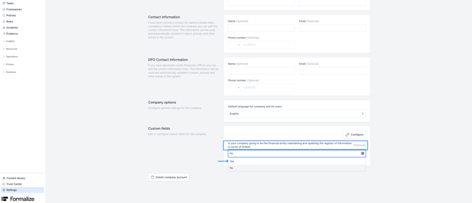 To allow Formalize to populate and use the relevant information about your company, you must first complete the Company Information section in the settings.