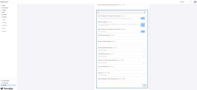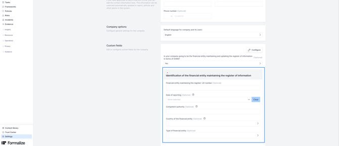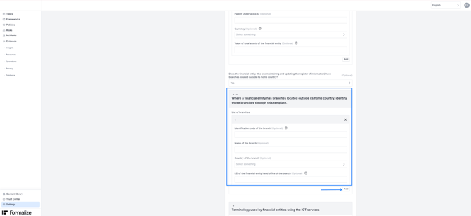 You will now be able to see the section “Identification of the financial entity maintaining the register of information.”