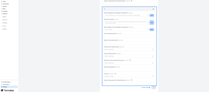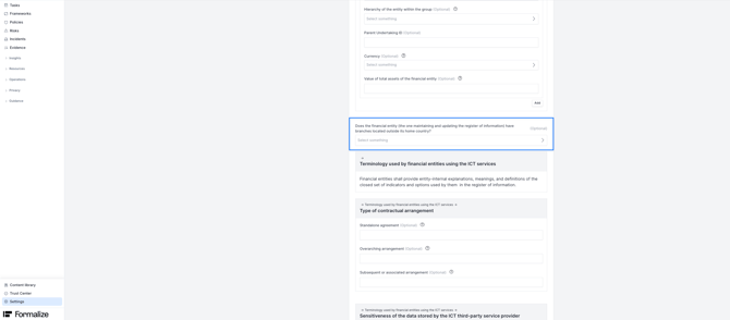 This guide details the end-to-end process for creating the DORA Register of Information (ROI) within the Formalize platform. The steps covered range from importing or adding data to exporting and validating your final report using the Formalize Validator tool.