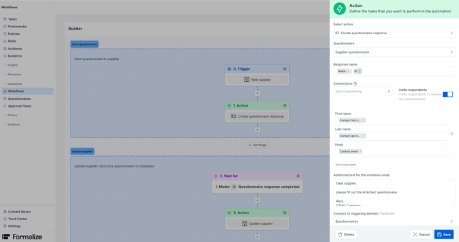 When a new supplier is added, the workflow automatically sends the questionnaire to the contact email saved on the supplier record.