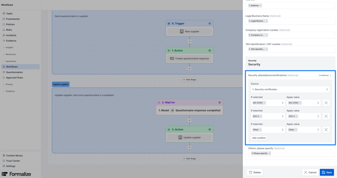 Once the questionnaire is completed and the workflow is executed, the supplier is automatically updated accordingly.